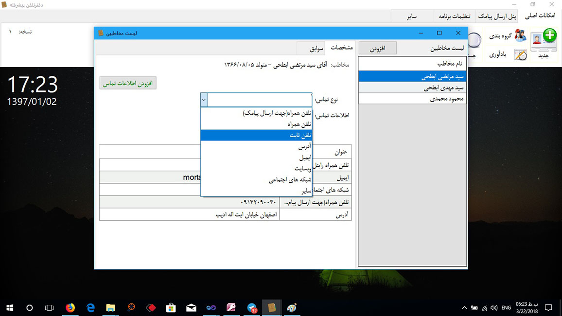 امکانات دفترچه تلفن در نرم افزار چالاک املاک